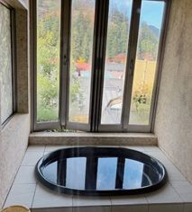 花谷氏: 本当なら宿泊して頂きたかったのですが、残念なこと に、紅葉祭りがあって満室でした。是非、日を改めてゆっくり 泊まっていただき、温泉も堪能 してください。